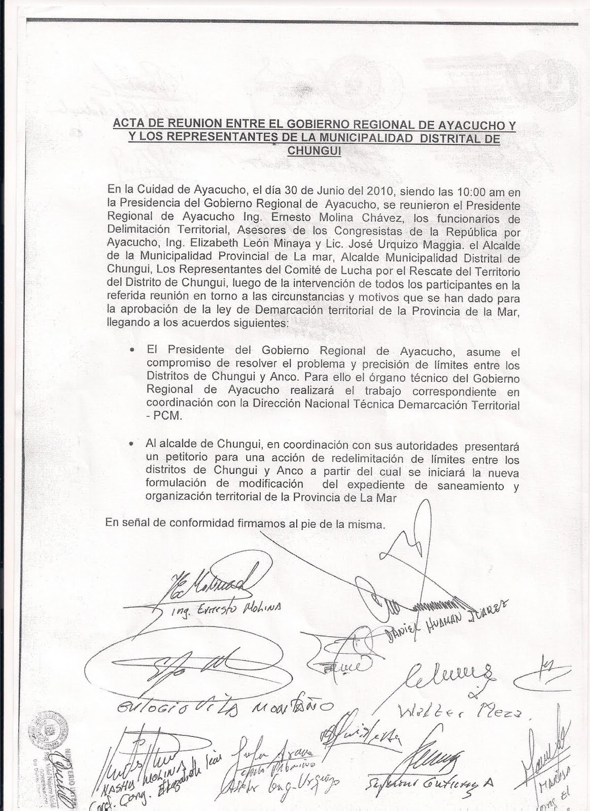 Acta entre el Gobierno Regional y los representantes de Chungui (Colaboración de José Montoya – http://llaqtamaqtachunguilamar.blogspot.com/